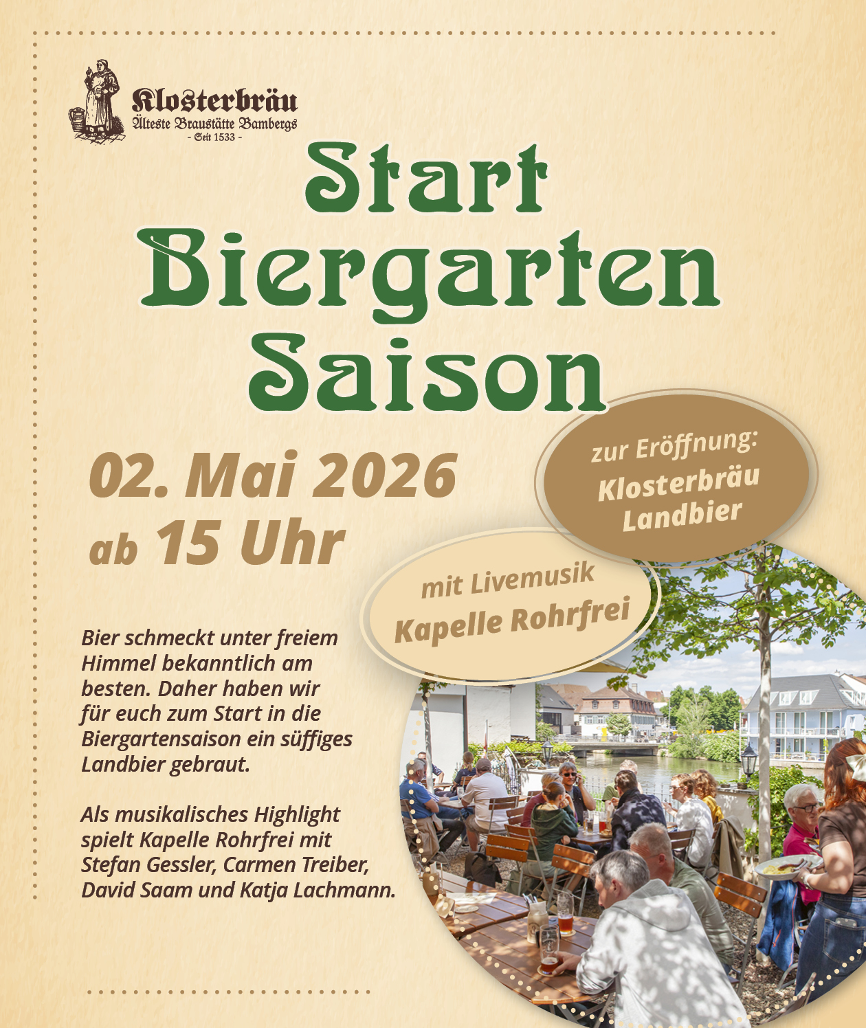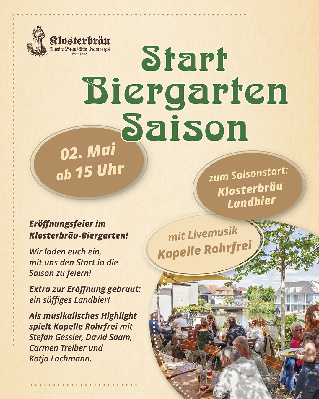 Die Klosterbräu ist mehr als eine Gaststätte. Es ist auch eine traditionelle Brauerei. Sie steht für Genuss und Geselligkeit, Tradition und Freundschaft. Natürlich, ungezwungen, leger. Kurzum: Hier ist die Welt noch in Ordnung und Bamberg am schönsten. Im Sommer lässt sich´s im Biergarten direkt an der Regnitz sehr gut aushalten oder auch auf den Stufenterrassen vor der Gaststätte.